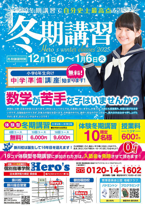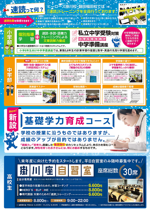 はじめまして。個別指導学院 ヒーローズ 掛川校・磐田福田校・掛川座自習室へようこそ。